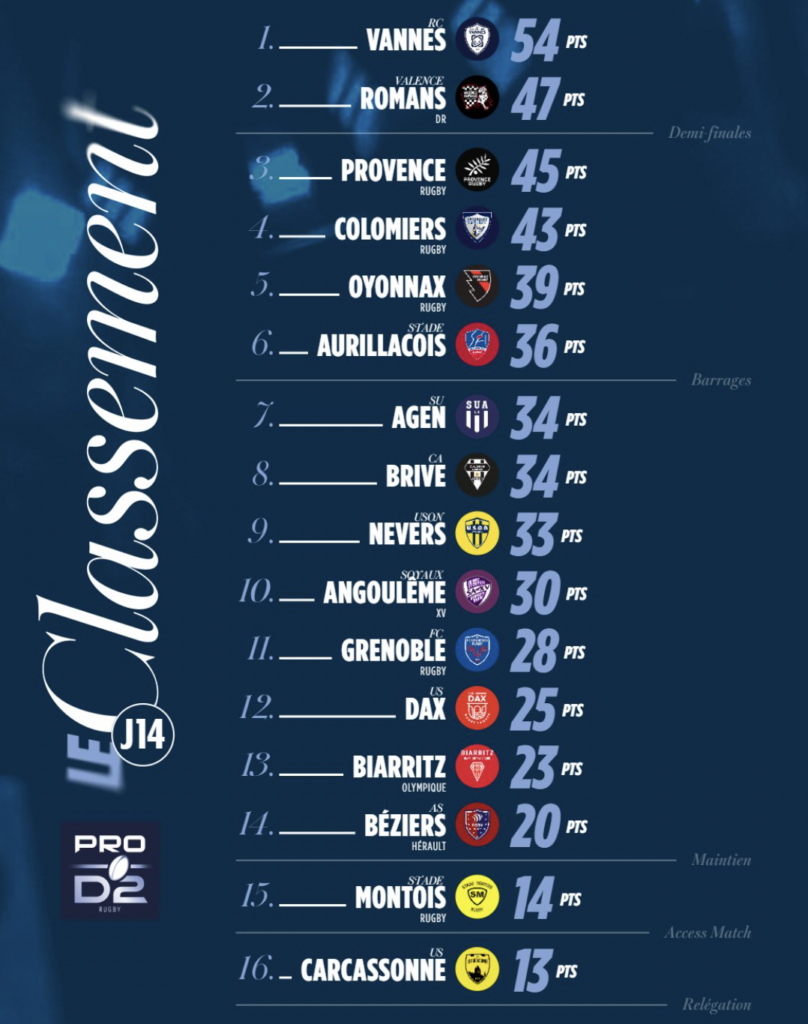 Le classement de PROD2 à la J14 :